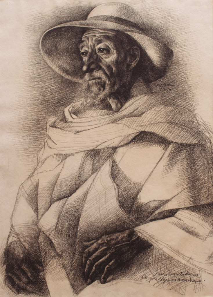 Abajo a la derecha, el artista registra: “El viejo Evaristo Llanes -dibujo realizado en Humahuaca-“.